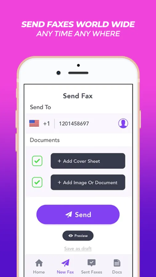 Seriously, no fax machine required! Send ANY document anywhere in the world in just a few taps.