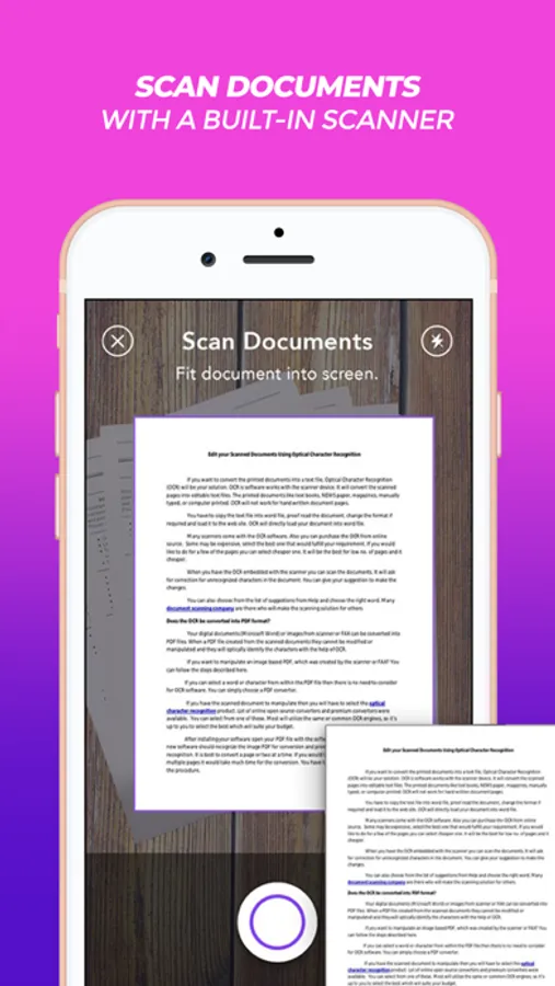 • Quickly create documents by selecting images from your Camera Roll, or uploading from anywhere else on your device.