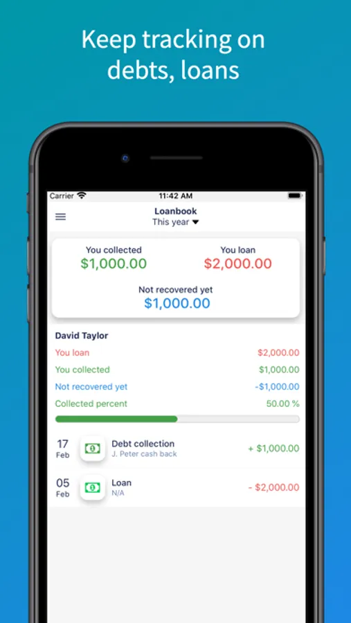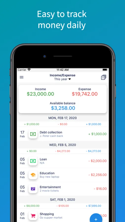 - Debt, loan, and saving managements (Pro package): all related records will be centralized. The user can track them easily. These records are grouped by a person.