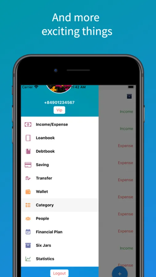 - 6 jars method (Vip package): it's a well-known method to manage money smartly. The income and expense amounts are automatically added into configurable jars. It will warn if a jar is over budget. The user can check the total of available budget on each jar to spend more sufficiently.