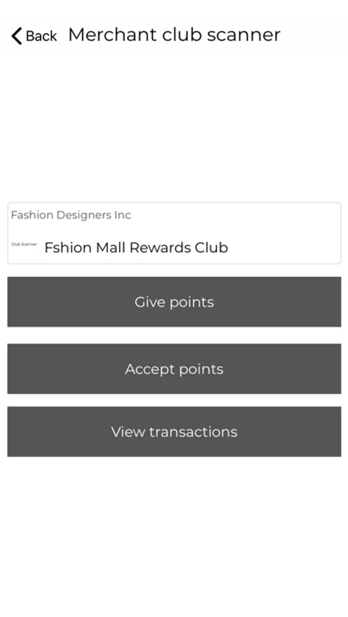 People working in retail sales use this app to offer rewards points to customers, by scanning a barcode or typing in an e-mail or cellphone number. The rewards club must be on the Larington platform.