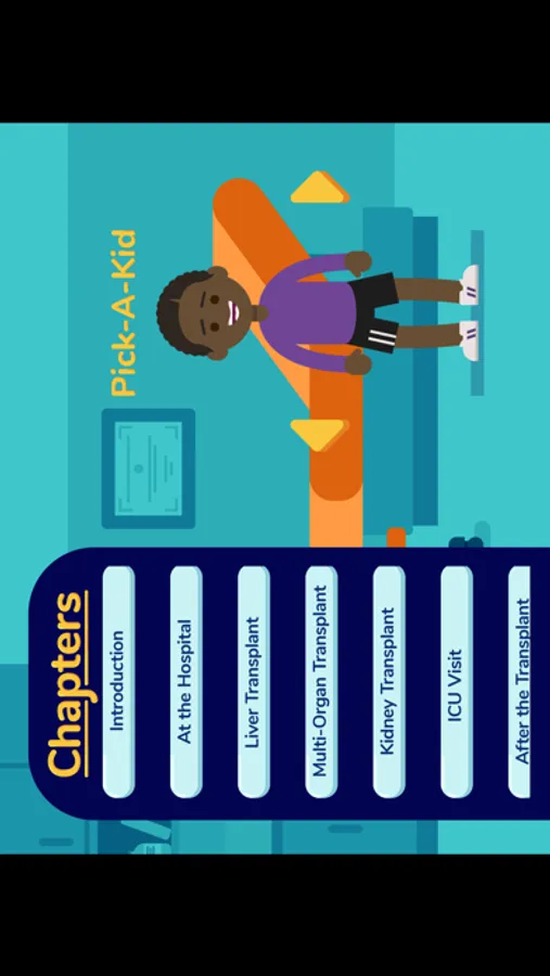 A child-friendly solid organ preparation tool with captivating graphics, explanations, and suggestions for coping. Users experience the transplant process through an interactive introduction of what to expect upon arrival and after the transplant. App features include self-paced learning with "read to me" or "read by myself" options, multicultural avatar selections, and drag and drop engagement with transplant-related medical equipment.