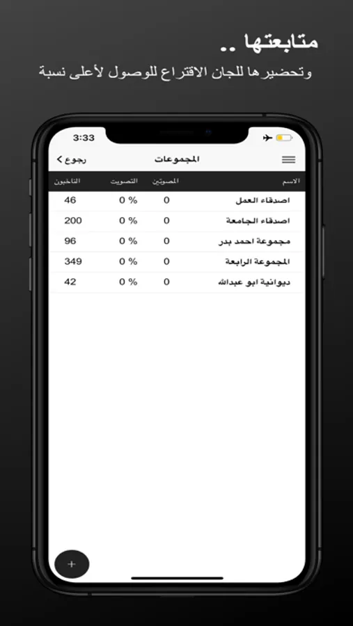 كما يمكن للمستخدم طباعة كشوف الاسماء ويمكن حفظ بيانات الناخبين بصيغ pdf ومشاركتها مع افراد الحملة الانتخابية.
