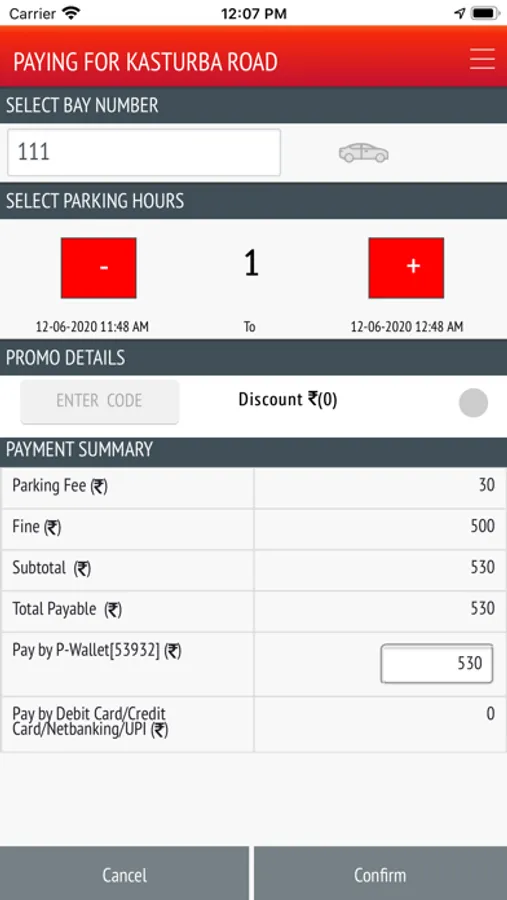 • Add one or more vehicle in the cart. Add one or more add-on services (valet parking etc.) to the cart.