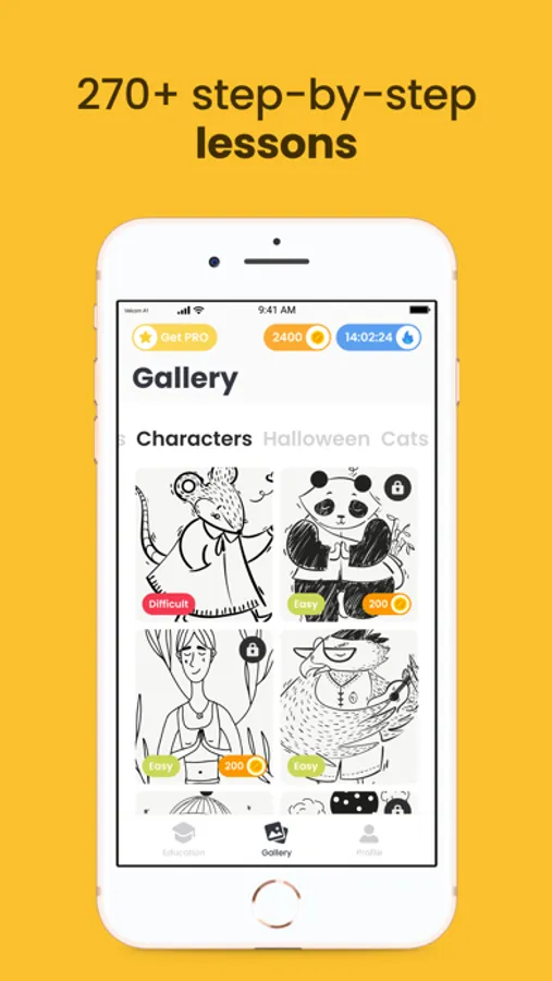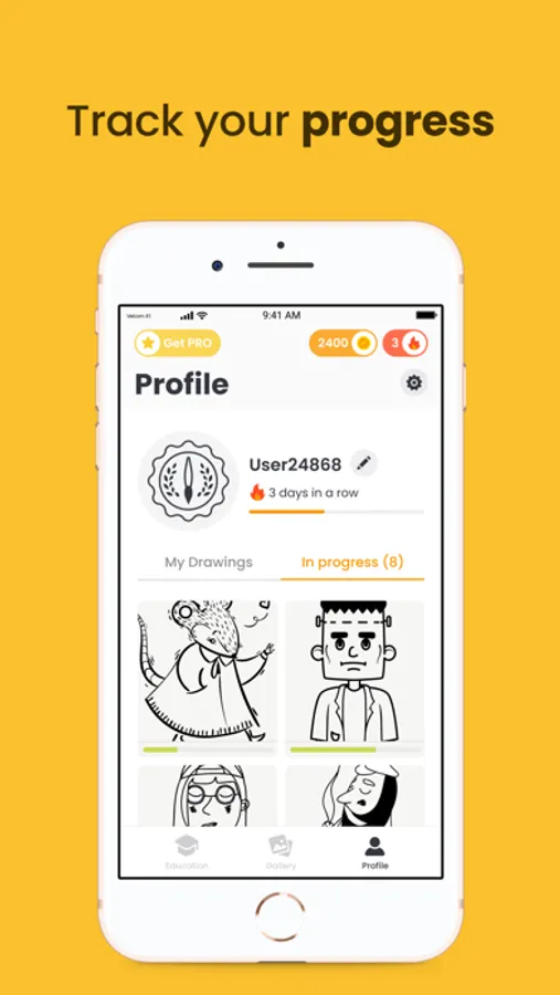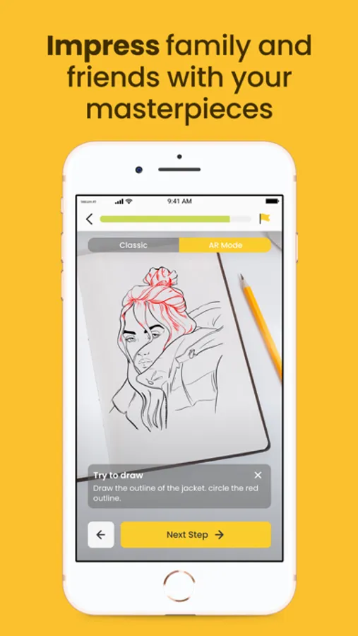 Our application gives you the right tool at every stage, when you need it, for example, a pencil, marker, paint brush, and you can use them even if you do not have paper at hand. Practice in a special mode in our application, save your drawing in your profile and share your achievements with friends if you wish.