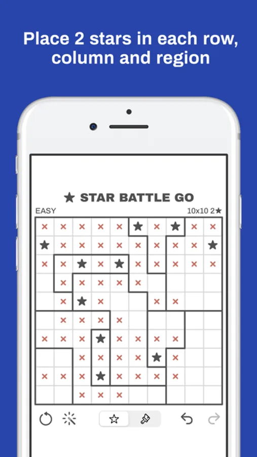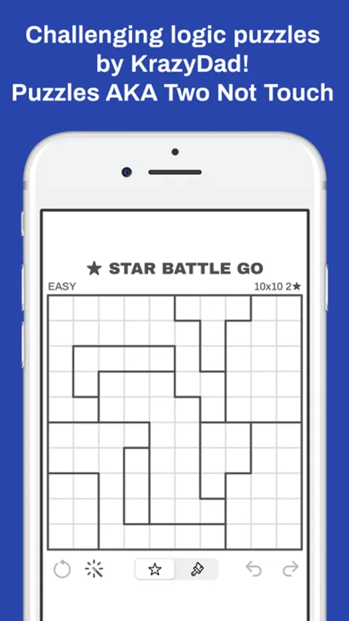 Star Battle Go a full-featured app for enjoying star battle puzzles on iOS! Puzzles by KrazyDad, featured in the daily puzzle section of the New York Times, where the puzzles are known as "Two Not Touch".