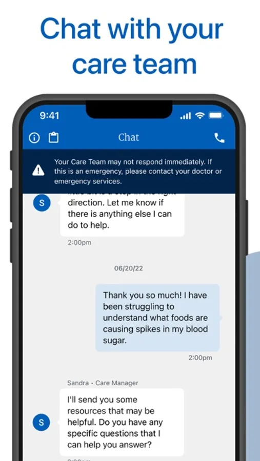 Seek a doctor’s advice before making any medical decisions. This app is designed for education and to provide support between provider visits. If you're enrolled in an eligible care program you may connect a glucometer to share readings with your care management team, but should continue to check with your doctor before making any changes to diet, exercise, or treatment plan.