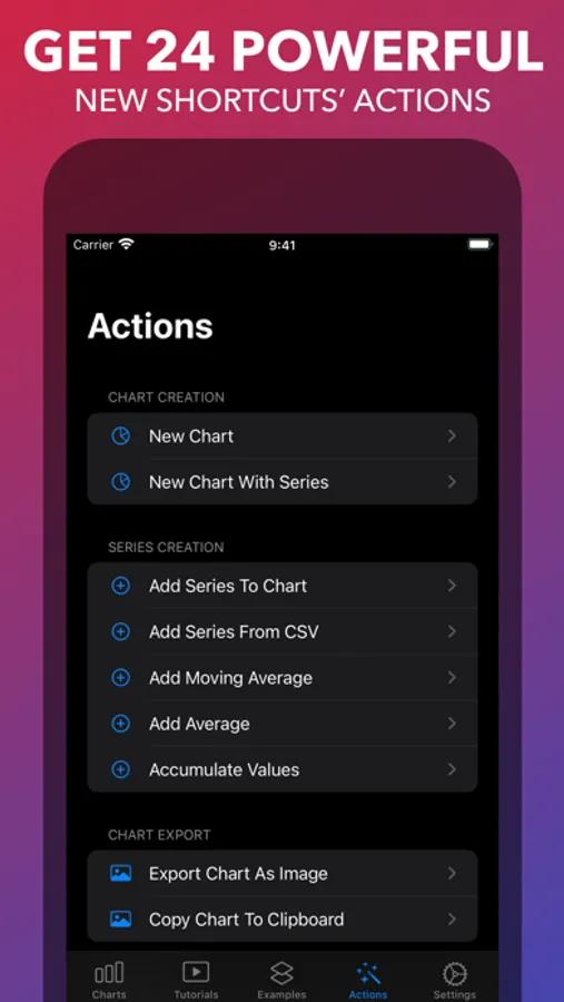 • Create powerful shortcuts by unlocking all of Charty's actions;