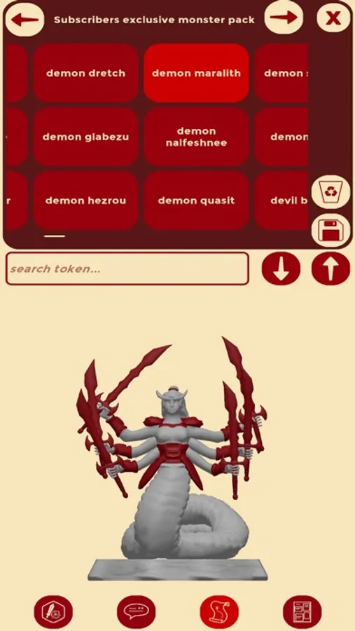 - Upload 2D images or 3D models (.stl files) to create custom 3D tokens (hero or monster subscription required)