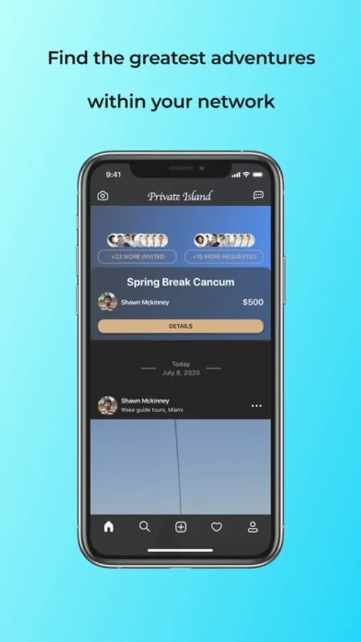 Private Island maps private social events, giving guests the opportunity to see, request and join (when approved by the host) social gatherings around the world.