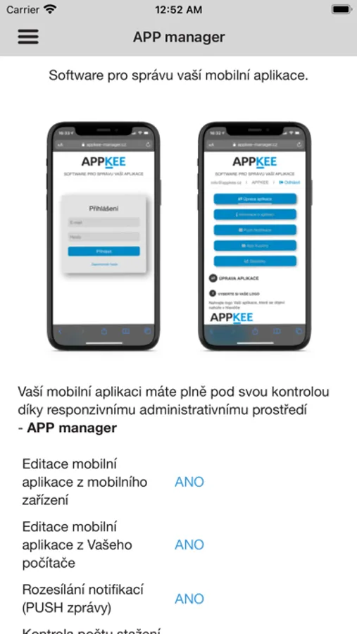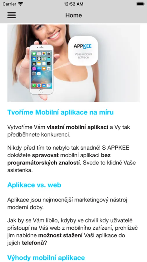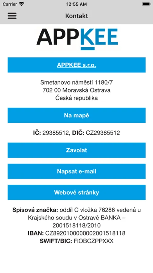 Aplikace APPKEE obsahuje důležité informace o firmě. Najdete v ní naše vybrané reference nebo funkce vaší mobilní aplikace. V aplikace naleznete kontaktní formulář, potřebné kontakty, ceník služeb a druhy naších tarifů. Aplikace poskytuje rychlé volání, snadné psaní e-mailu či navigaci.