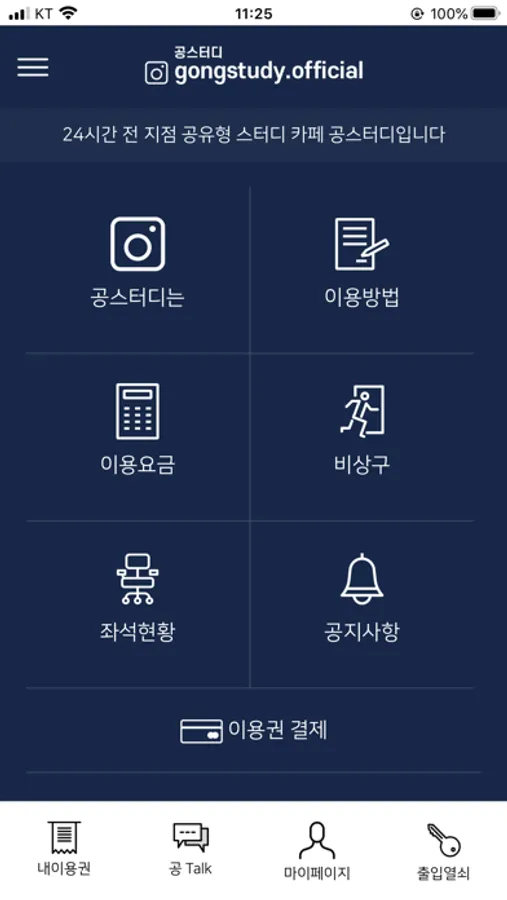 이용권이 있는 고객은 스마트폰이 '공스터디' 전 지점 출입이 가능한 열쇠가 됩니다.