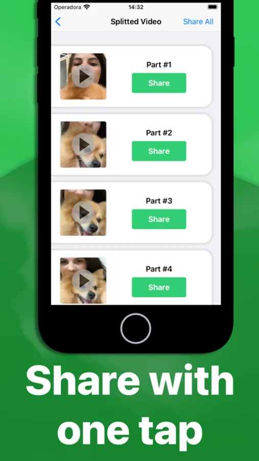 Besides sharing to Stories and Status, you can save your splitted video to your camera roll or share your video fragments with other apps at your will!