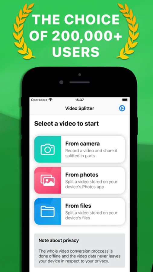 Video Splitter works 100% offline, using your device to convert the video so your data is never sent to a server, protecting your data privacy!