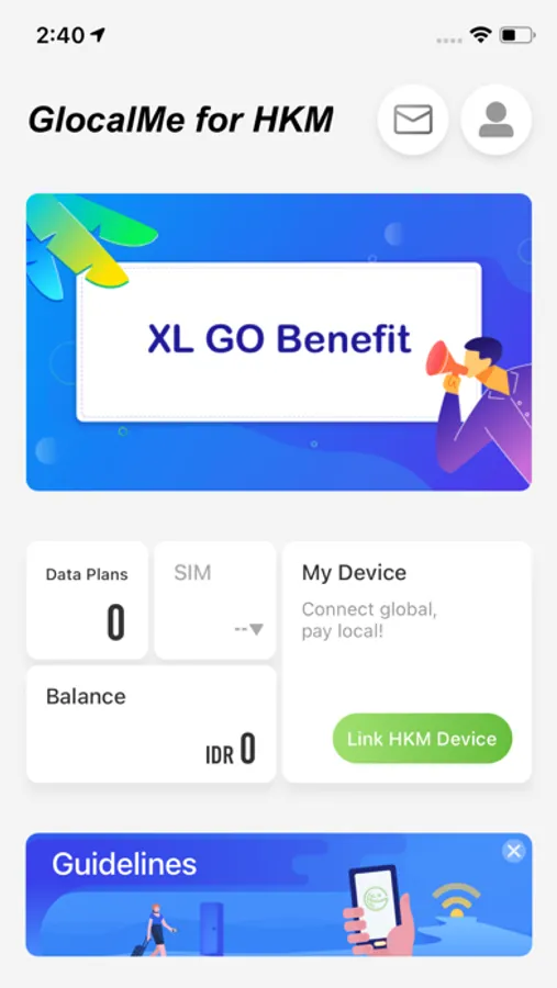 GlocalMe for HKM app is designed to manage your MiFi HKM powered by GlocalMe, top up, buy package, and check the data usage and device status.