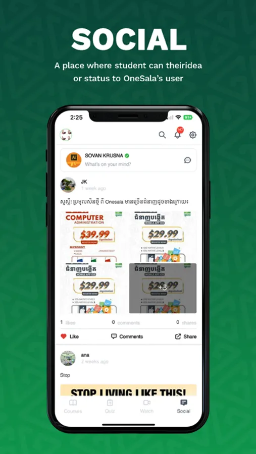 OneSala is the top Cambodian e-learning platform for students, content creators, and people who want to expand their knowledge.