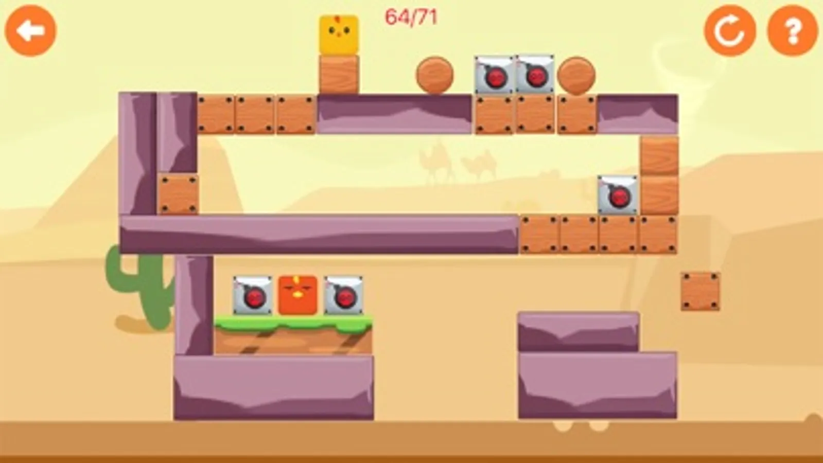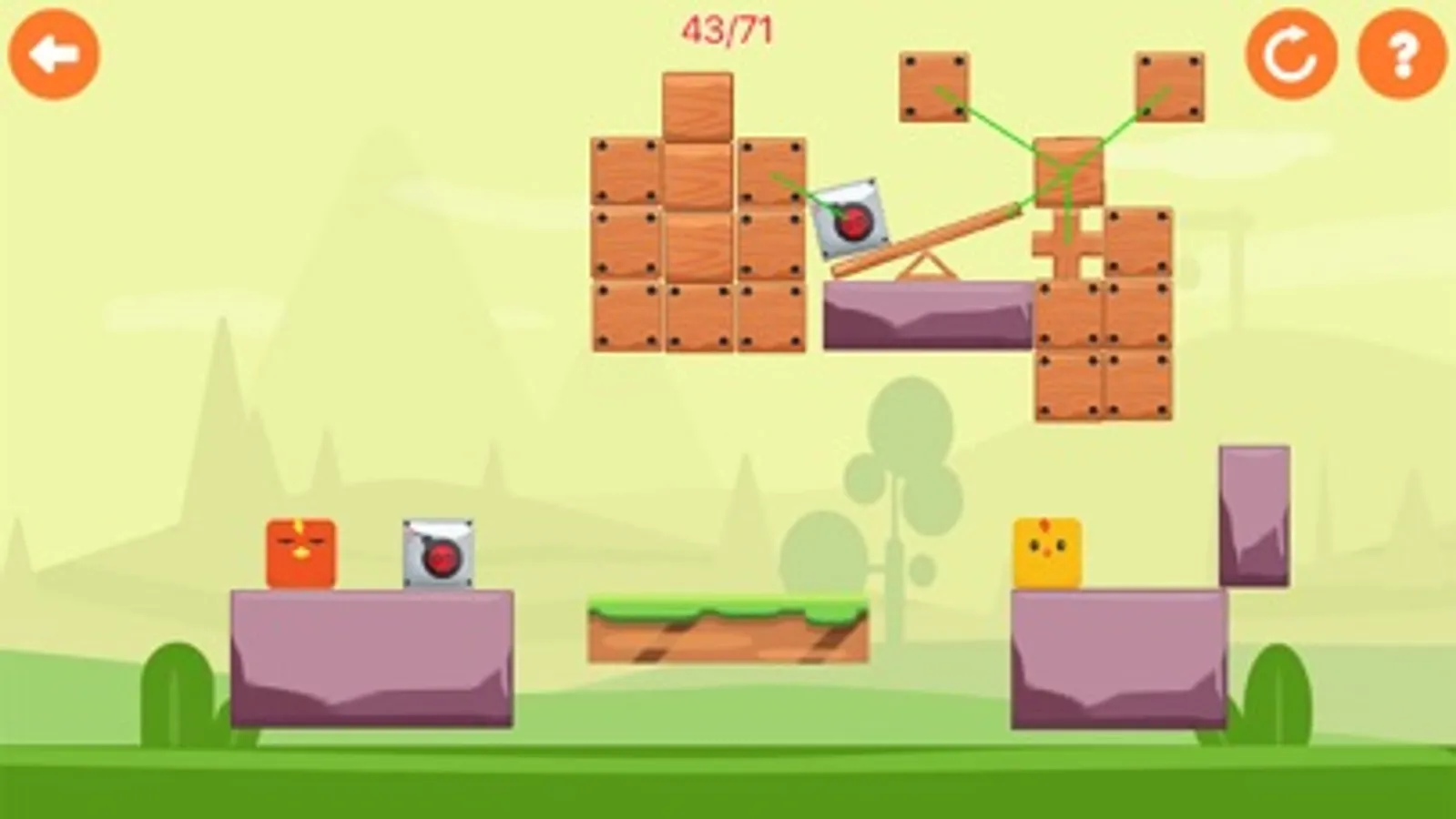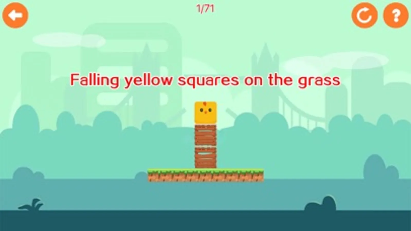 Click to eliminate the game elements such as circle, polygon, etc., and the protagonist will fall down according to gravity, so that the yellow square can fall on the target grass to pass the customs.