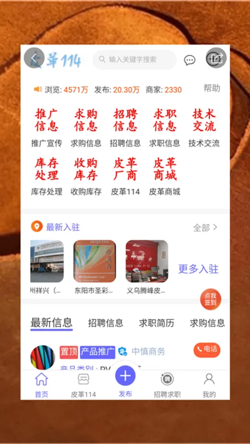 专业皮革行业的分类信息平台,提供皮革行业的寻找皮革、推广皮革、皮革原材料、皮革机器设备... ...等皮革行业方面的资讯平台,只要是皮革行业相关的从业人员,我们平台都有你需要的资讯!