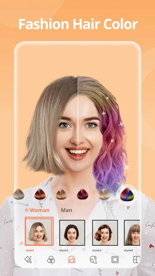 · We provide long hair, short hair, curly hair, straight hair, back, just click the button, the hairstyle will automatically fit your face, easy to change the hairstyle.