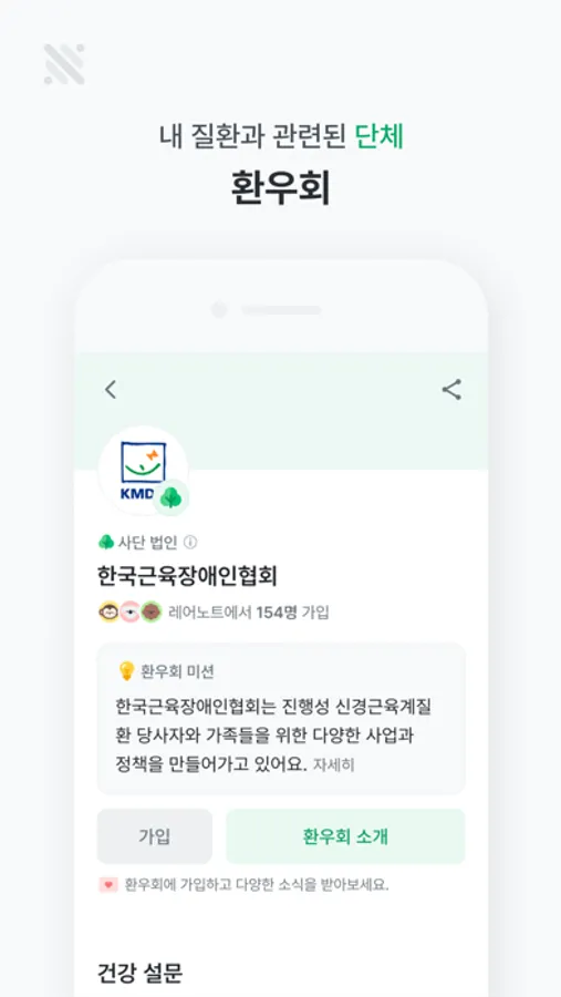 • 환우회는 환자의 목소리를 세상에 전하는 역할을 해요. 환우회에 가입해 더 큰 목소리를 내는 데 힘을 보태주세요.