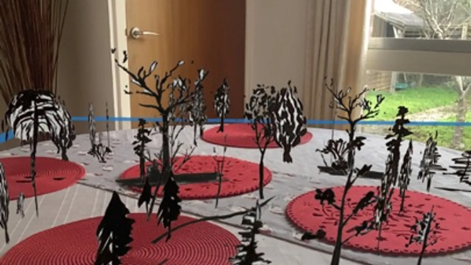 Move the camera around your environment. When it detects a horizontal surface you'll notice a blue box appear. You can now plant trees into this scene by clicking anywhere within the blue box.