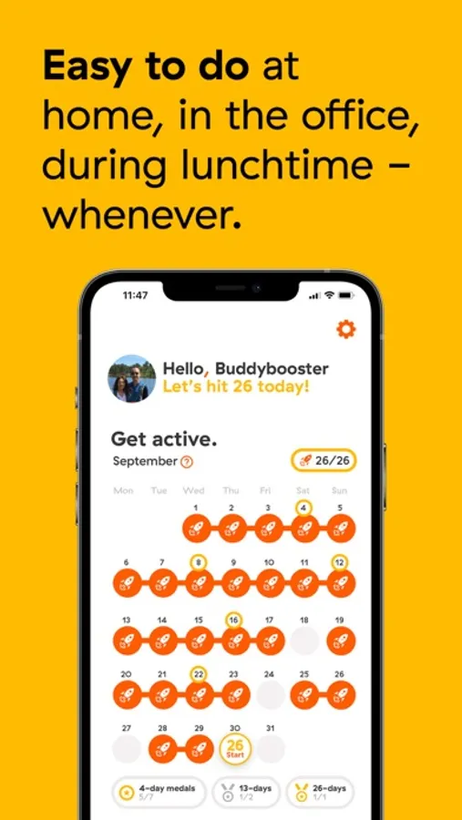 Download the app and send a link inviting up to 11 others to join you in a buddy group. Then support and encourage each other to complete one of our simple, fun challenges to help you be more active, reduce your stress levels, eat a little better or lead a greener life.