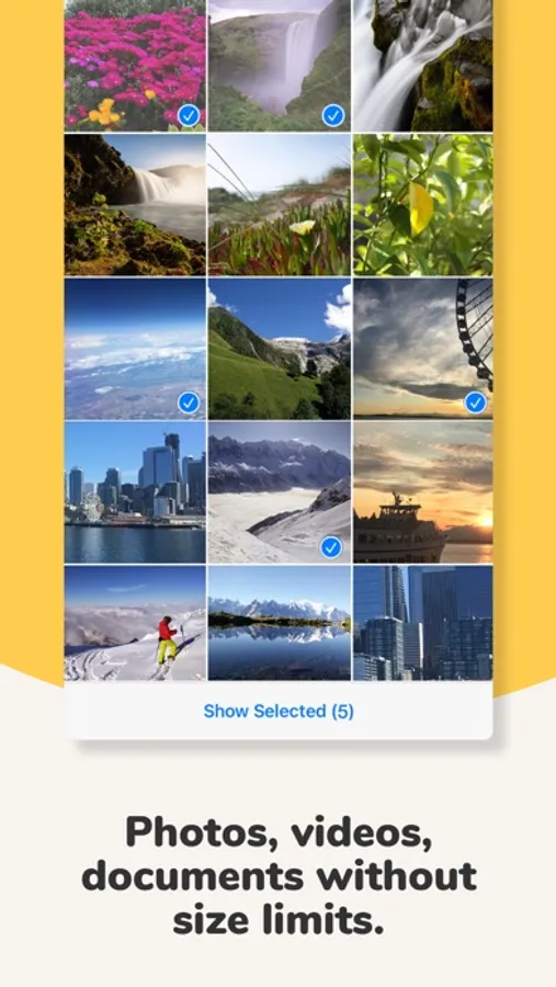 Download now the Smash app, with no registration required and send the files of your choice. Your files keep their original quality and your last transfer is accessible at your fingertips.