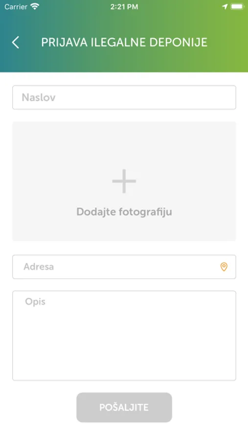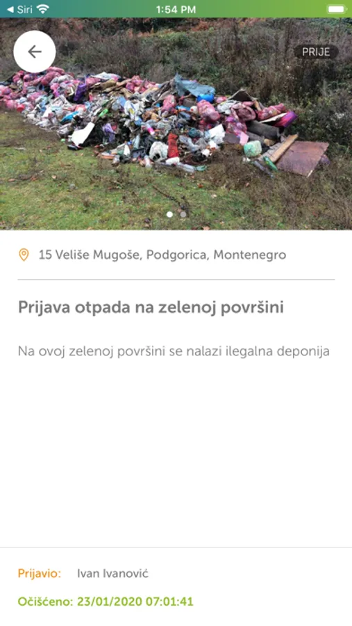 Aplikacija nudi mogućnost kreiranja naloga građanima i kompanijama, pri čemu je za prijavu potrebna verifikovana e-mail adresa i lozinka. Građanin može da prijavi lokaciju u gradu na kojoj nije otklonjen otpad kao i da pregleda aktuelne prijave otpada od strane drugih korisnika i prati njihov status. Kompanija prijavljuje otpad koji je prikupila i selektovala tako što unosi podatke o vrsti i količini otpada.