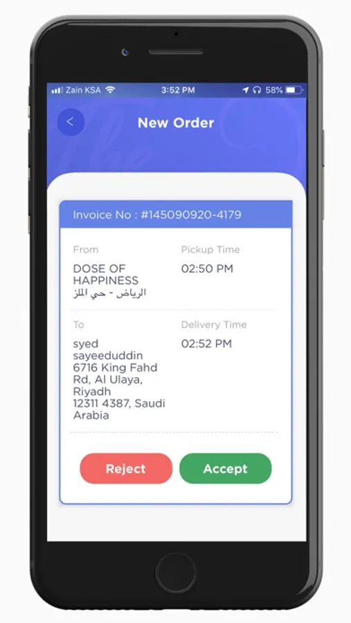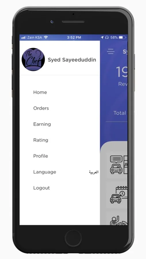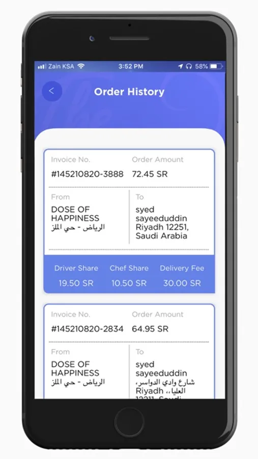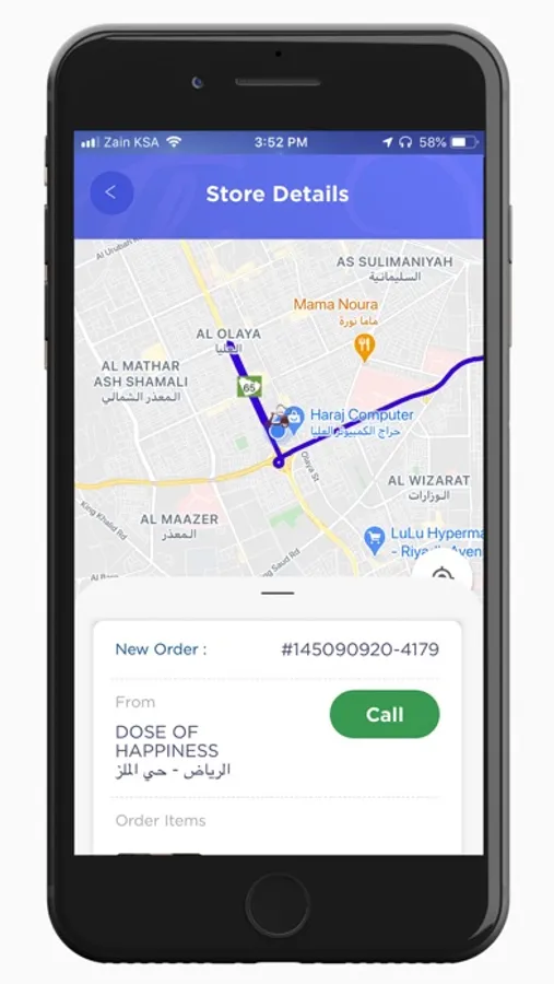 يستخدم تطبيق سائق الطاهي خرائط جوجل حيث يمكنك استخدامه للوصول إلى موقع الاستلام وموقع التسليم