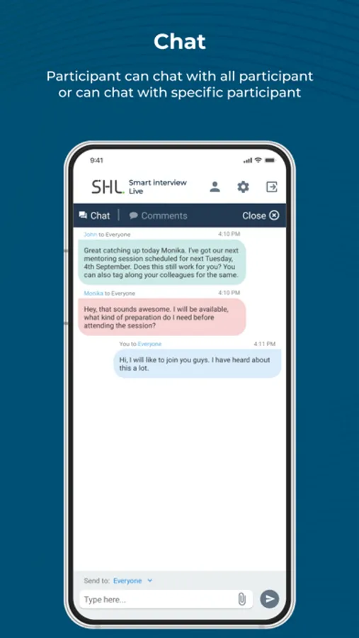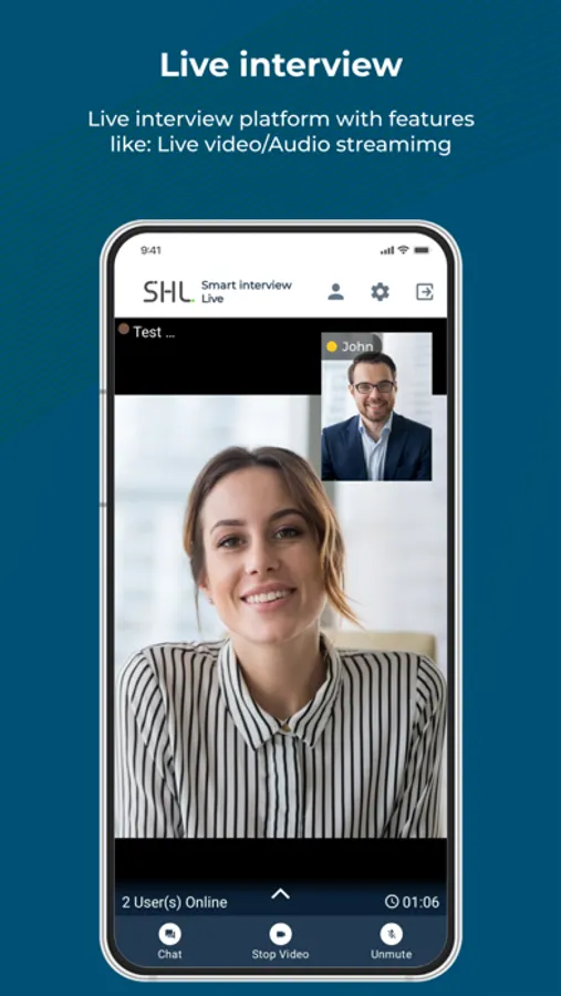 Smart Interview Live provides a collaborative environment using audio-video conferencing and chat. Interviewers and candidates can download the app and join interviews using the interview link they receive.