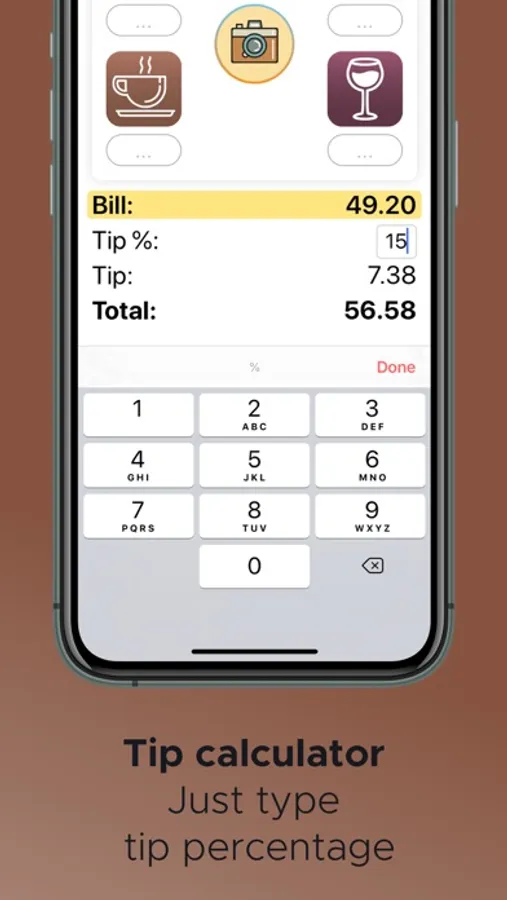 - Set tip percentage and change it if needed