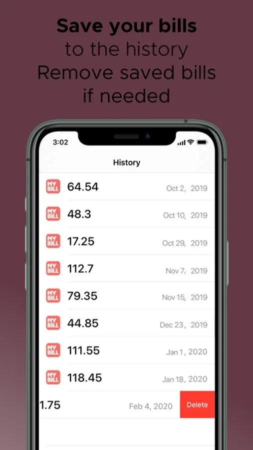 - Save your bills to the history
