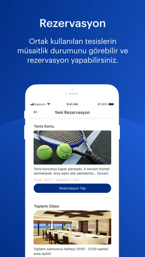 • Rezervasyon Özelliği: Golf sahası, havuz, sauna ve spor salonu gibi ortak kullanılan tesislere istediğiniz an rezervasyonunuzu yapabilirsiniz.