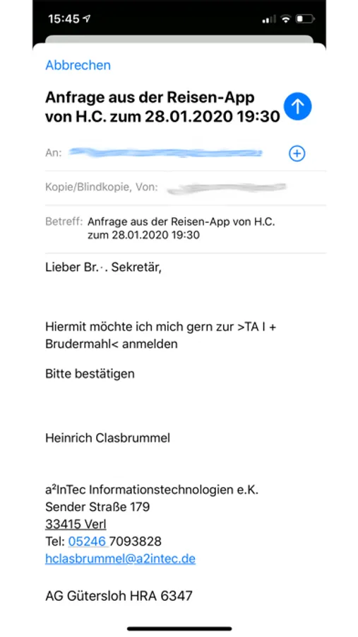 Anmeldung zum Besuchswunsch über Auswahl eines Termins per Apple Mail enthalten.