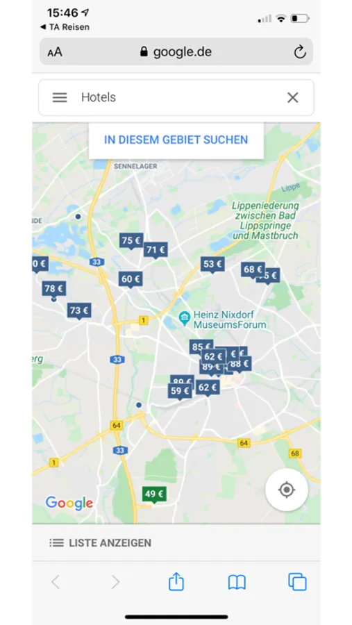 Suche nach Orten oder Namen möglich.