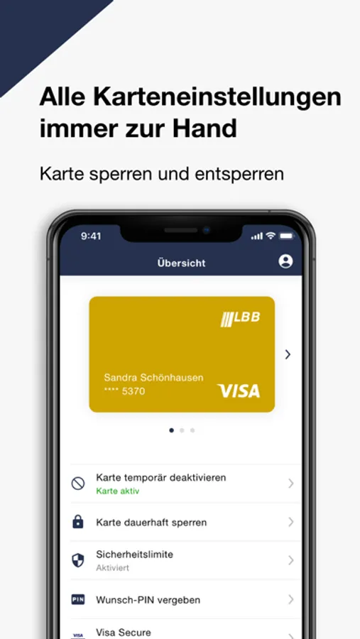 Verwalten Sie Ihre LBB Kreditkarte einfach und sicher auf Ihrem Smartphone.