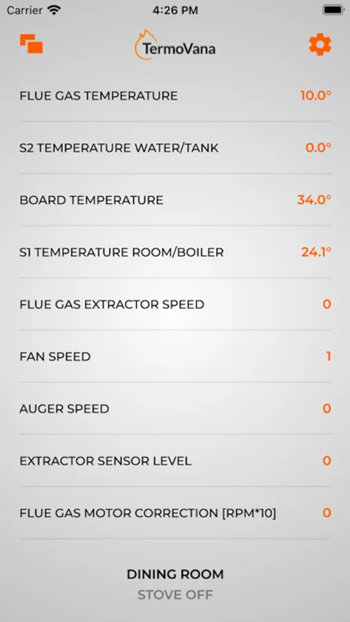 Having real-time access to various operating parameters, such as flue gas and room temperature (in the case of the stove), water temperature (in the case of the boiler), speed of the flue gas, room fan and auger, etc.