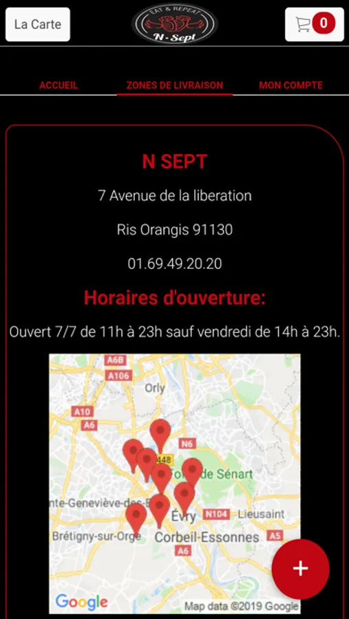L'application Iphone/Ipad de N SEPT vous permet de commander en ligne ou par téléphone via votre application . Vous pouvez consulter notre carte et choisir vos produits .
