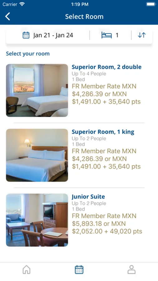 ● Different options to pay for your stay (Fiesta Rewards special rate, Fiesta Rewards points, or certificates).