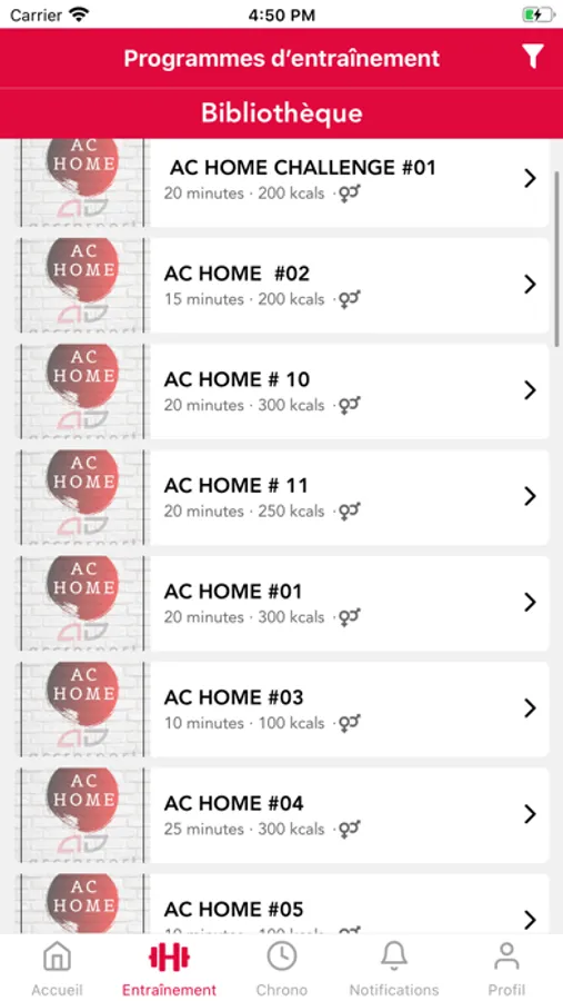 Ajoutez toutes vos activités à votre historique : cours collectifs, programmes, séances d'entrainement.