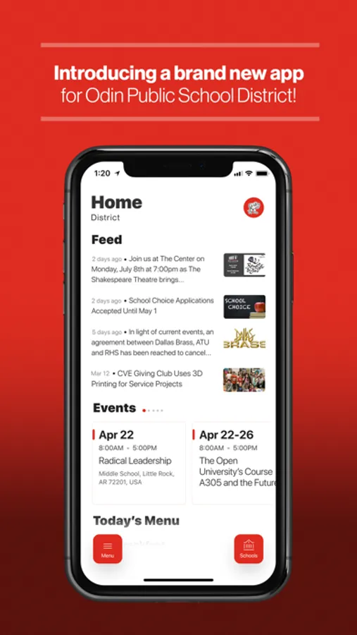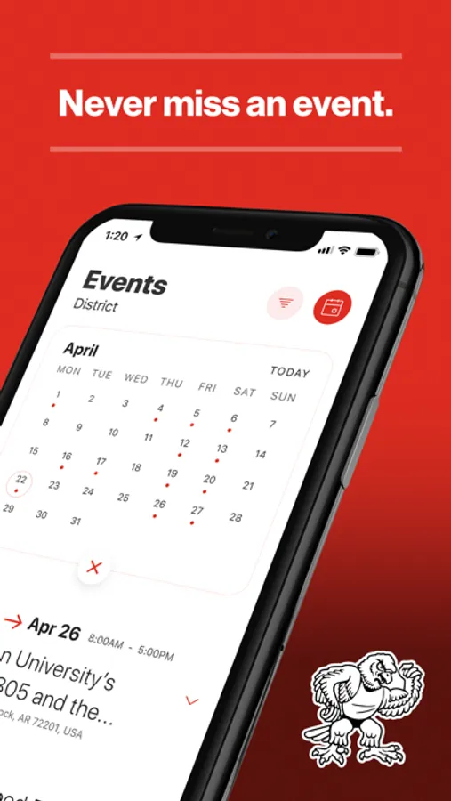 The event section shows a list of events throughout the district. Users can add an event to your calendar to share the event with friends and family with one tap.