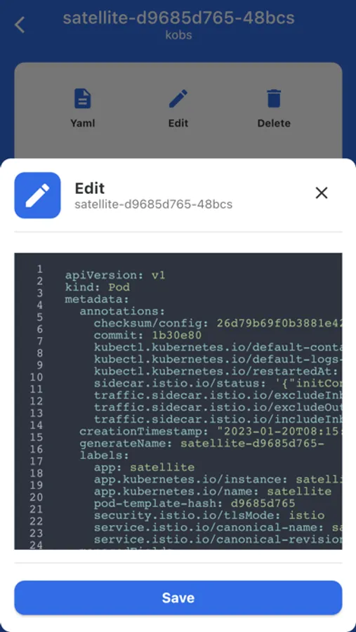 - Modify Resources: Edit and delete all available resources or scale your Deployments, StatefulSets, DaemonSets.