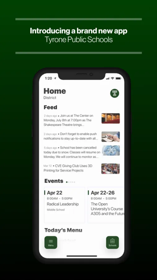 The official app for Tyrone Public Schools allows users direct access to the most recent news, announcements and event calendars. Customize the app to display information relevant to a specific campus and to receive important notifications from the district. Users may also access the directory of district faculty and staff, view dining menus, find the location of district events, contact campuses and departments, follow athletic scores and updates, and much more.