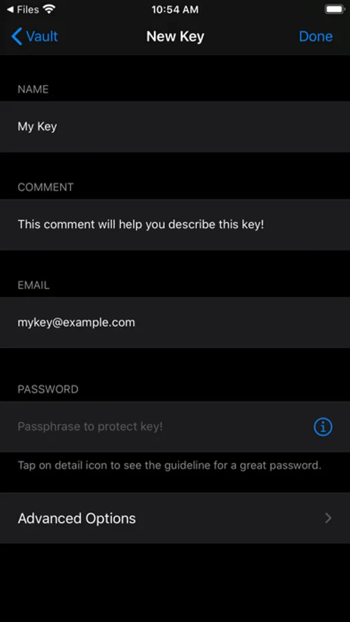 * Quickly import your existing keys through iTunes/Finder, AirDrop, iCloud, Mail or locally from your device or generate a your first one with KryptoVault.