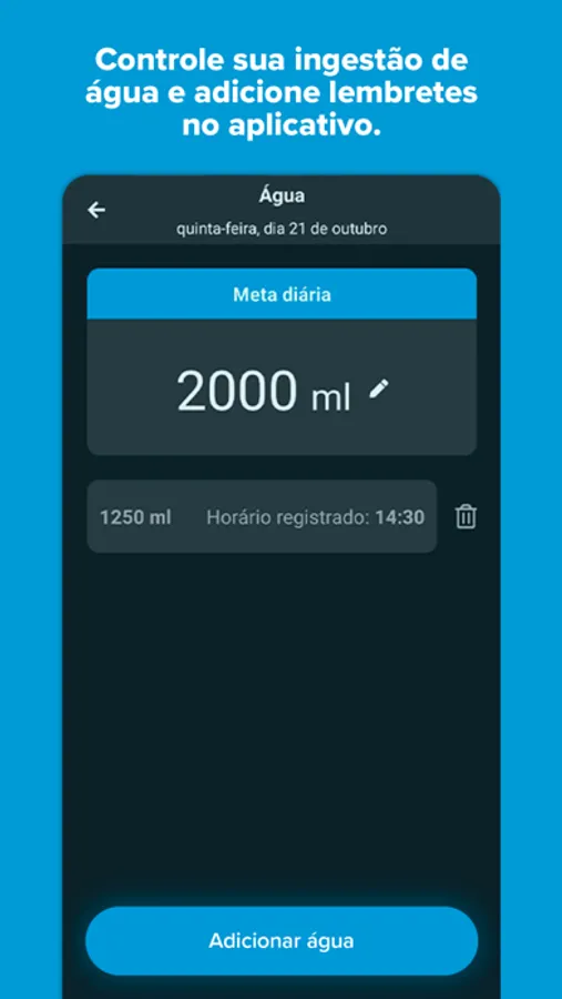 Seja lembrado de beber água fazendo um pequeno ajuste no alarme do aplicativo!
