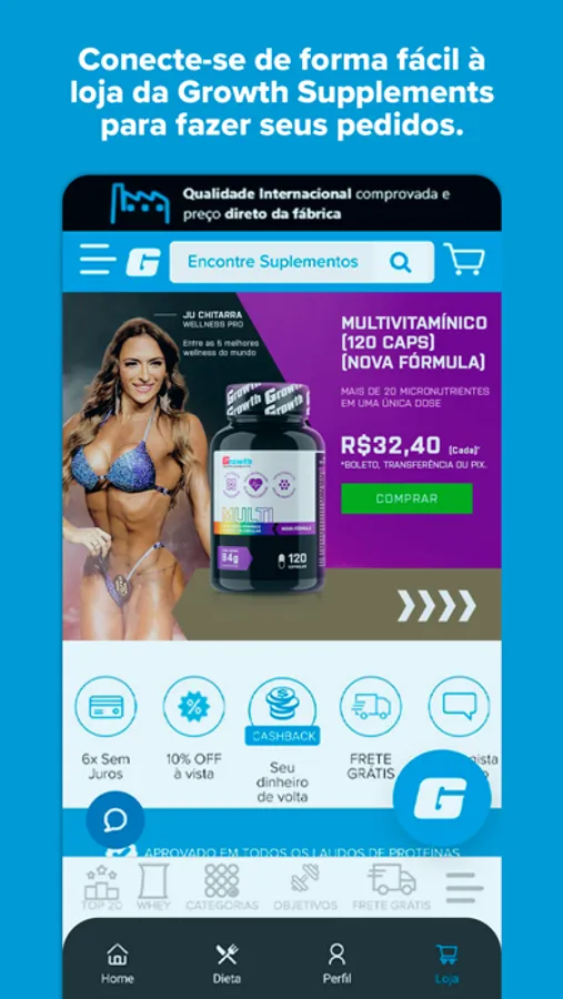 Conecte-se de forma fácil à loja da Growth Supplements para fazer seus pedidos.