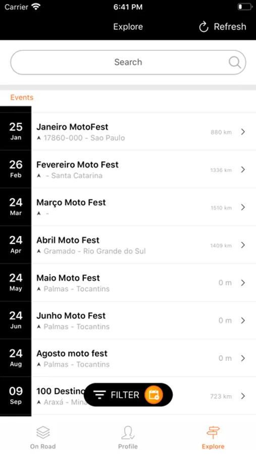 - Explore: here the user could to explore the motorcycle world by searching another riders, motogroups or events using filters to find a specific information.