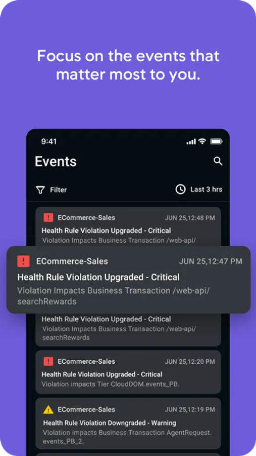 AppDynamics in the palm of your hand. View system performance and subscribe to push notifications so you only receive the alerts you need. Anytime. Anywhere.