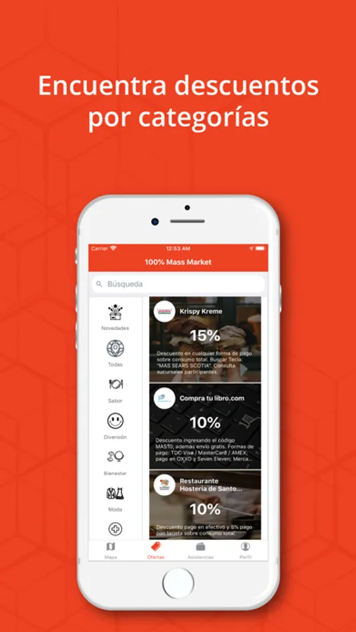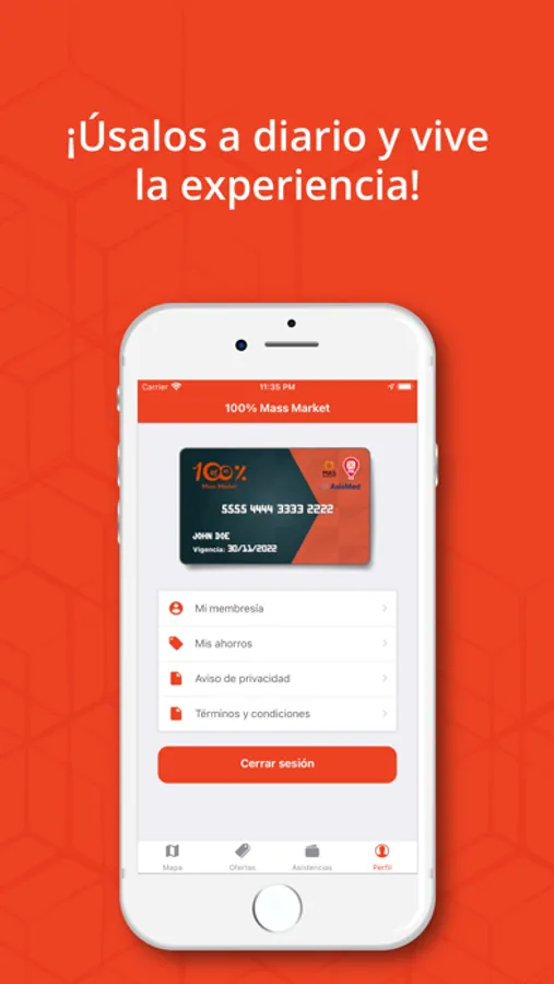 Importante: Se requiere contar con la tarjeta 100% Mass Market para poder gozar de los beneficios con los que cuenta la aplicación.
