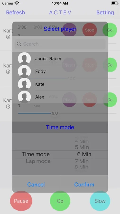 2. Setting up and adjusting speed(s) for both individual kart, or for all the karts.